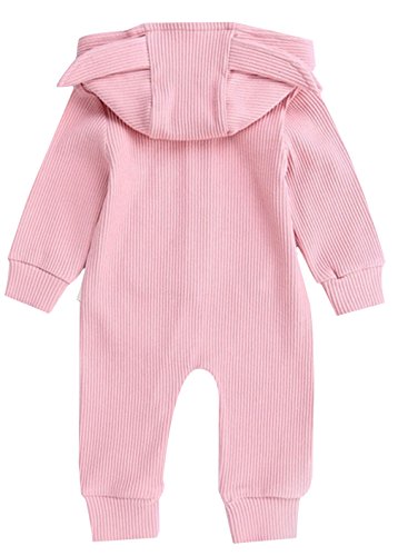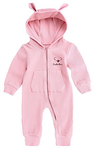 (コ-ランド) Co-land ベビー ロンパース 長袖 クマ 着ぐるみ フード付き カバーオール 女の子 男の子 パジャマ 新生児 出産祝い ピンク 80cm