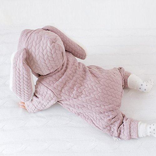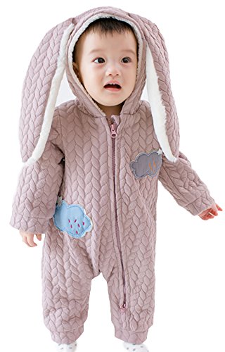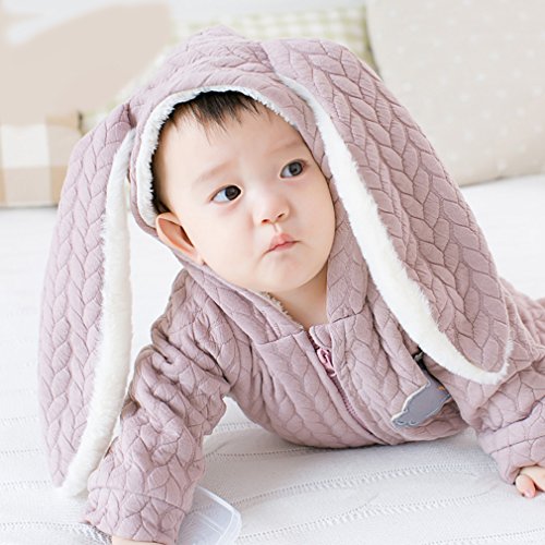(コ-ランド) Co-land ベビー服 ロンパース 赤ちゃん カバーオール 新生児 長袖 フード 耳付き ウサギ うさぎみみ 着ぐるみ 女の子 男の子 秋冬防寒 出産祝い 可愛い ピンク 80