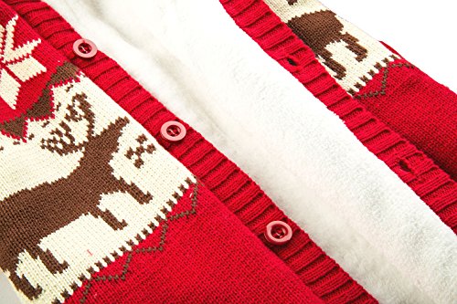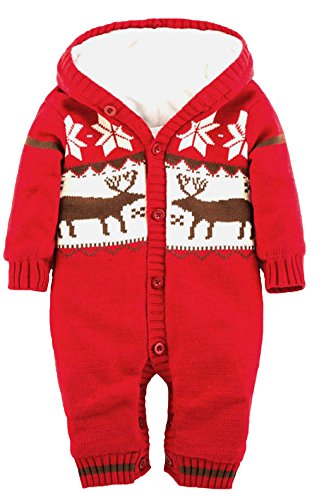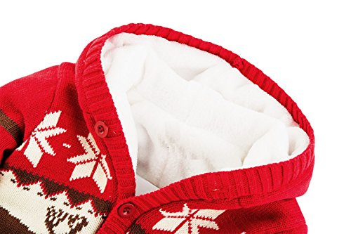 (コ-ランド) Co-land ベビー服 あったか ロンパース 赤ちゃん カバーオール 新生児 長袖 フード付き シカと雪花柄 秋冬着 ニット 男の子 女の子 もこもこ 出産祝い レッド 2A