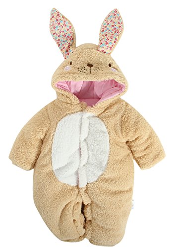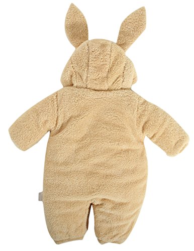 (コ-ランド) Co-land ベビー服 ロンパース 赤ちゃん カバーオール 新生児 長袖 フード ウサギ耳付き 配色 着ぐるみ 女の子 男の子 秋冬防寒 出産祝い 可愛い 90