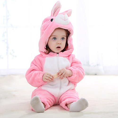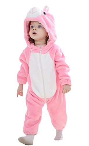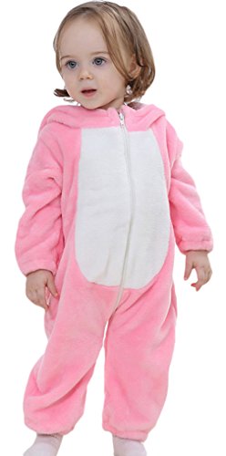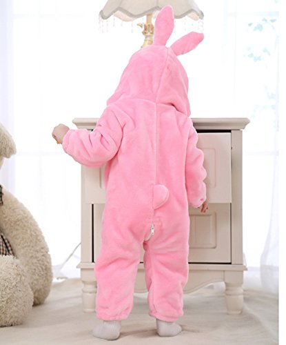 (コ-ランド) Co-land ベビー ロンパース 動物 着ぐるみ クマ コスチューム あったか パジャマ 幼児 赤ちゃん カバーオール 出産祝い ピンク 70