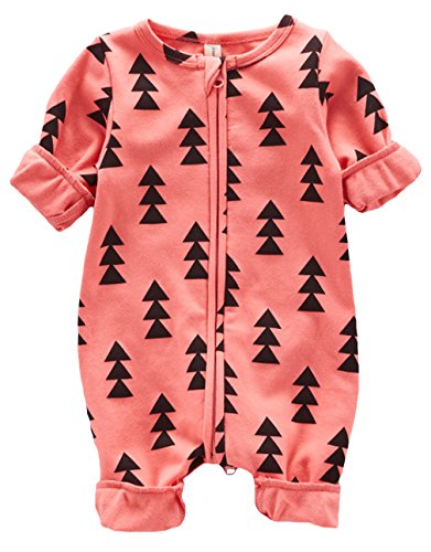 (コ-ランド) Co-land ベビー服 ロンパース 赤ちゃん カバーオール 新生児 前開き 可愛い図案プリント 肌着 女の子 男の子 男女児 出産祝い オレンジ M
