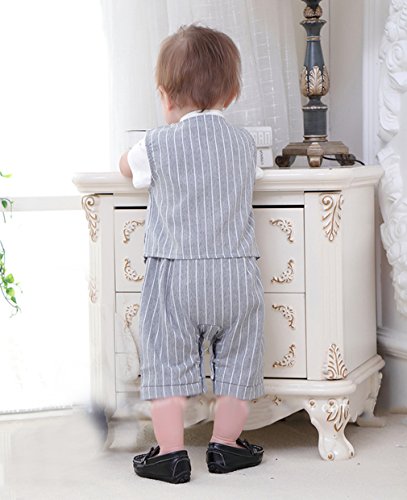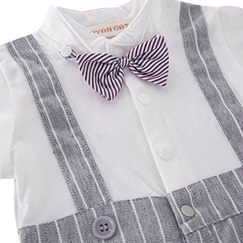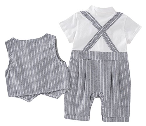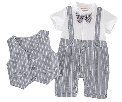 - ベストと蝶ネクタイつき、着ると紳士になるかっこいい男の子フォーマルな半袖ロンパースです。