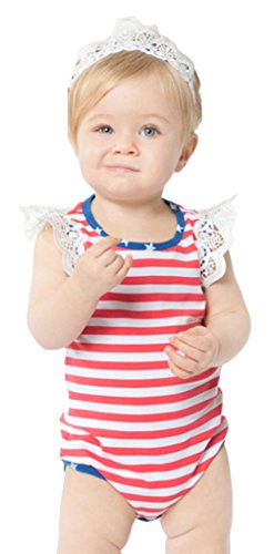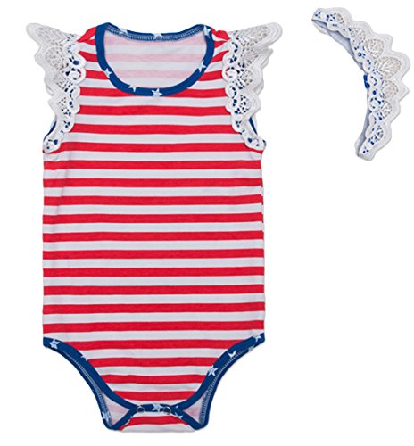 (コ-ランド) Co-land ベビー服 ロンパース 半袖 カバーオール 赤ちゃん 女の子 女児 出産祝い 寝相アート ストライプ柄 髪飾り 2点セット レッド 59