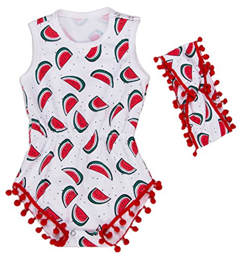 (コ-ランド) Co-land ベビー服 ロンパース カバーオール 赤ちゃん 女の子 女児 出産祝い 寝相アート スイカ柄 ヘアバンド 2点セット レッド S