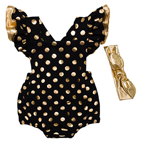 (コ-ランド) Co-land ベビー服 ロンパース 半袖 カバーオール 赤ちゃん 女の子 女児 出産祝い 寝相アート ドット柄 ヘアバンド 2点セット ブラック 80