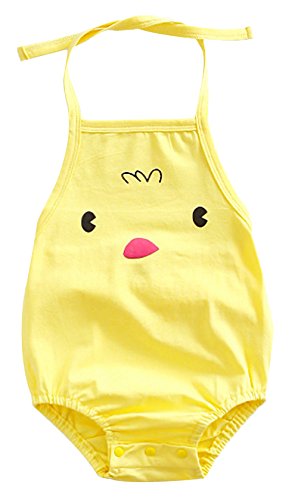 (コ-ランド) Co-land ベビー ロンパース 可愛い 赤ちゃん用 オールインワン ホルターネック 動物プリント キッズ服 ショートパンツ 66 鶏