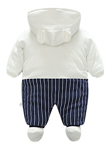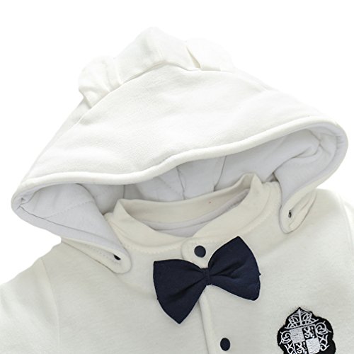 (コ-ランド) Co-land ロンパース ベビー 赤ちゃん カバーオール 長袖 足つき ジャンプスーツ フード付き アニマル柄 防寒着 出産祝い 男の子 女の子 ホワイト 73