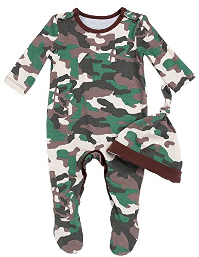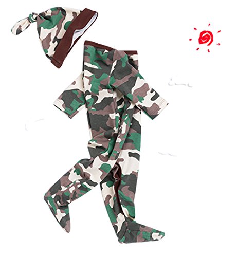 (コ-ランド) Co-land ベビーロンパース 長袖 クールネック カバーオール 幼児 赤ちゃん 迷彩柄 子供服 足カバー付き ハット付き 59