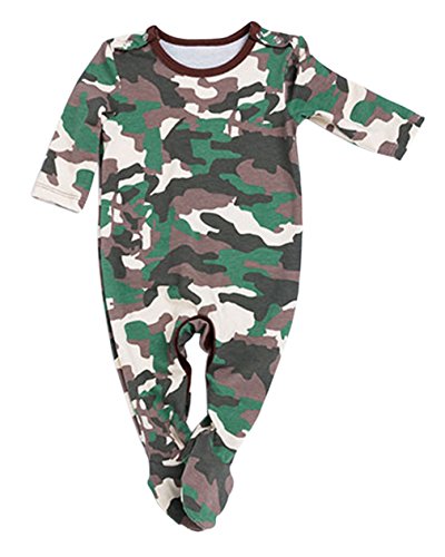 - 迷彩柄のデザイン、カジュアル、オシャレなロンパース。