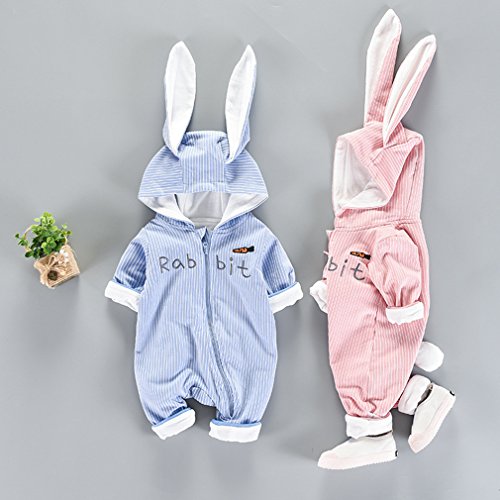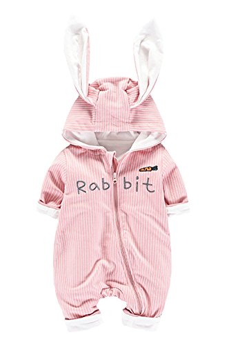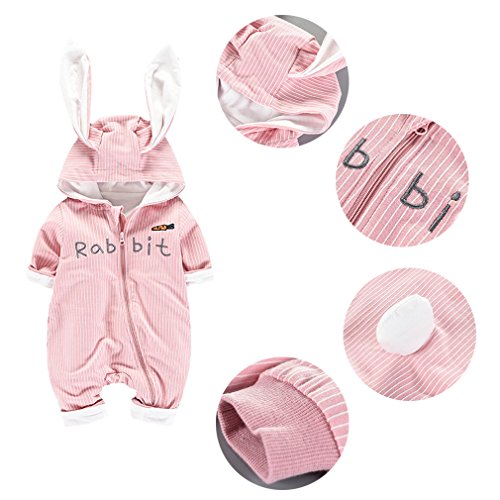 (コ-ランド) Co-land ベビー服 ロンパース カバーオール 着ぐるみ ウサギ ジッパー 女の子 男の子 連体コート 可愛い 前開き 73 ピンク