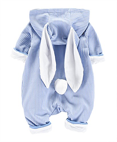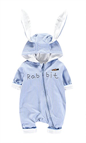 (コ-ランド) Co-land ベビー服 ロンパース カバーオール 着ぐるみ ウサギ ジッパー 女の子 男の子 連体コート 可愛い 前開き 90 ブルー