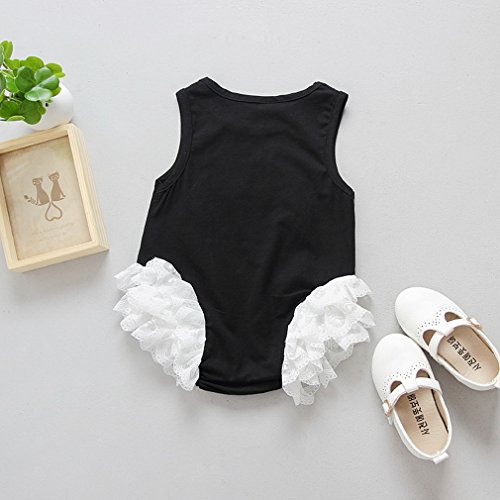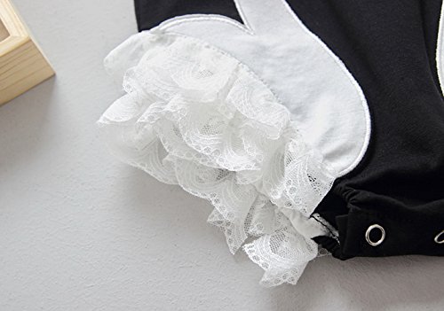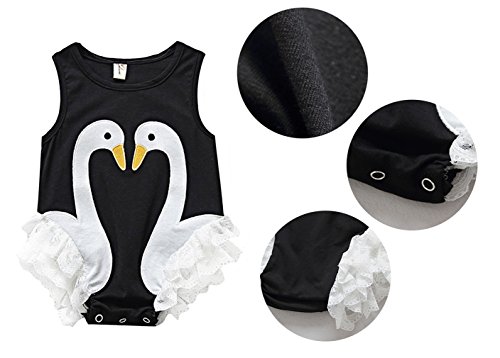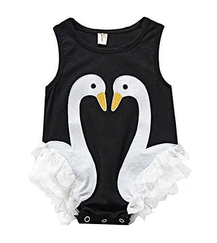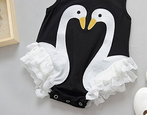 (コ-ランド) Co-land ベビー ロンパース 新生児 女児 ノースリーブ レース飾り 白鳥 カバーオール ワンピース 子供服 柔らかい 73 ブラック