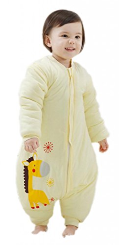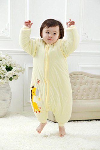 (コ-ランド) Co-land あったか ベビースリーパー キッズシュラフ 長袖 赤ちゃん 新生児用寝袋 袖が取り外す可 秋冬防寒グッズ ベビー寝具 象パターン イエロー 90cm