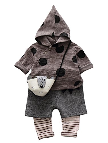(コ-ランド) Co-land ベビー服 シャツ ロングパンツ キッズ 長ズボン 男の子 セットアップ 上下2点 ドット柄 フード付き 男児 トップス 春秋着 可愛い チョコレート色 5