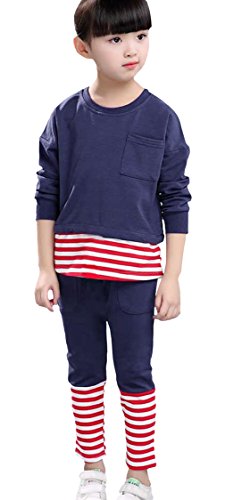 (コ-ランド) Co-land 子供服 シャツ ロングパンツ キッズ 長ズボン 女の子 セットアップ 上下2点 ボーダー 配色 ガールズ 長袖トップス ダンス衣装 春秋着 100