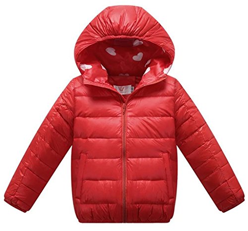 (コ-ランド) Co-land ふわふわ 子供服 ダウンジャケット キッズ アウター 女の子中綿ジャンパー フード付きコート 無地純色 ガールズ 女児 あったか 冬防寒 レッド 160