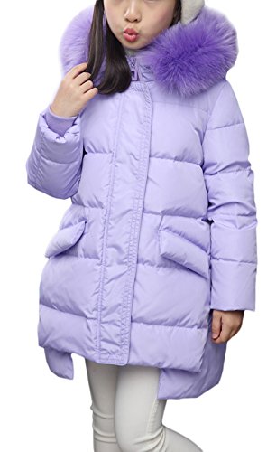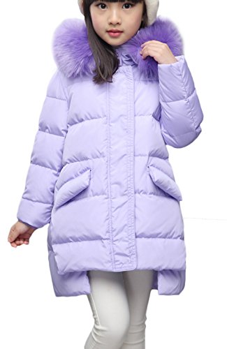 (コ-ランド) Co-land 子供服 ダウンジャケット キッズコート 女の子ジャンパー フード付き ロング丈綿服 ガールズ上着 厚手 韓国風アウターウエア あったか 冬防寒 パープル 130