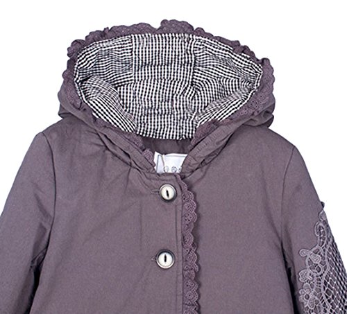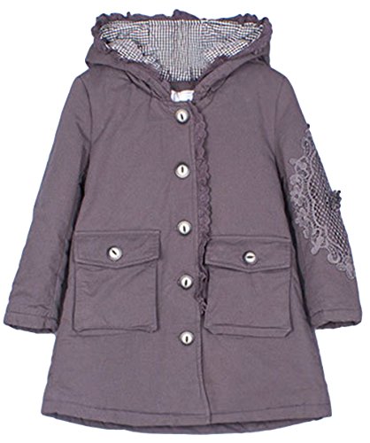 (コ-ランド) Co-land 秋冬物 子供服 アウター キッズコート 綿入りジャケット フード付き 女の子綿服 ガールズ上着 レース フリル 女児 可愛い グレー 90