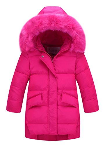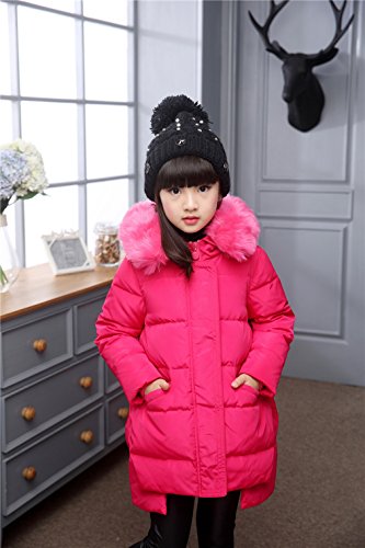 (コ-ランド) Co-land 子供服 ダウンジャケット キッズ 女の子 ダウンコート 長袖 アウター ベビー 秋冬物 綿服 ロング丈 フード 防寒防風 ガールズ ローズ 140