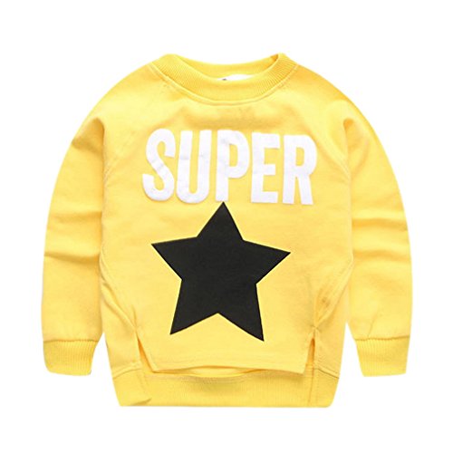 (コ-ランド) Co-land 子供服 長袖シャツ スウェット スタープリント 女の子 男の子 男女児 キッズトップス 丸首 秋着 ベビー トレーナー カジュアル イエロー 9