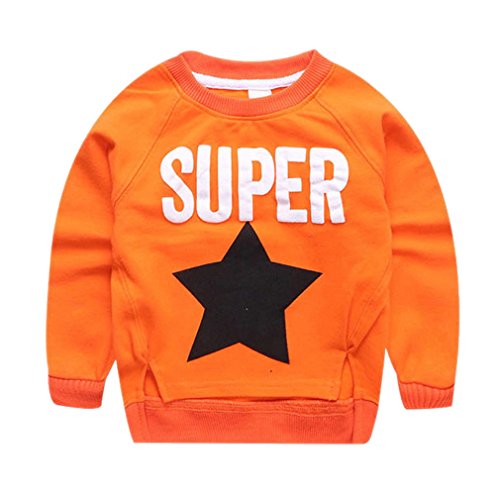 (コ-ランド) Co-land 子供服 長袖シャツ スウェット スタープリント 女の子 男の子 男女児 キッズトップス 丸首 秋着 ベビー トレーナー カジュアル オレンジ 5
