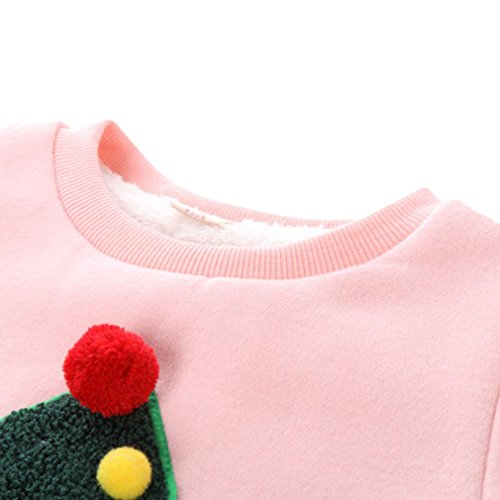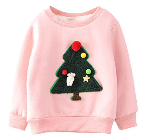 (コ-ランド) Co-land 秋冬物 子供服 女の子 スウェット 長袖シャツ キッズ 裹起毛 トレーナー プルオーバー ガールズ トップス クリスマスツリ—図案 ベビー 可愛い ピンク 9