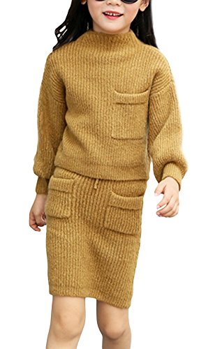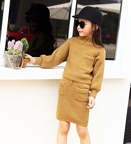 (コ-ランド) Co-land 子供服 女の子 セーター スカート 上下2点セット 長袖 ニットワンピース キッズ 無地 ポケット 秋冬 ガールズ ベビー フォーマル イエロー 140