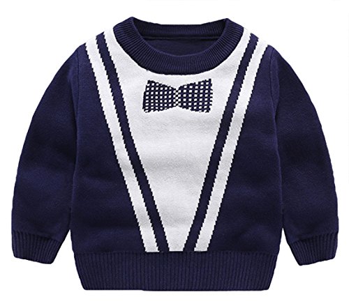 (コ-ランド) Co-land ベビー服 セーター ニット 長袖 男の子 子供トップス クルーネック 蝶ネクタイ図案 プルオーバー 紳士 冬 通園 通学 100 ネイビー