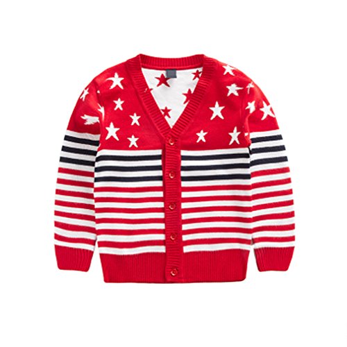 (コ-ランド) Co-land 子供服 男の子 カーディガン ボーイズトップス 長袖 Vネック セーター ニットカーデ 男児アウターウェア ベビー 柄プリント カジュアル スターレッド 105