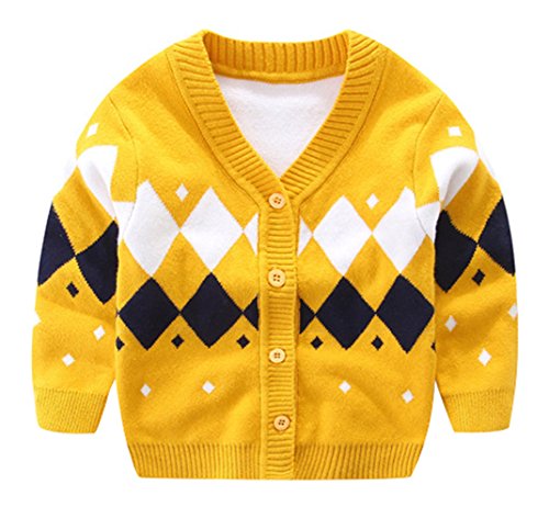 (コ-ランド) Co-land 子供服 カーディガン ニット 男の子 セーター キッズ アウター Vネック 長袖 スクール 発表会 入学式 秋 冬 59 イエロー