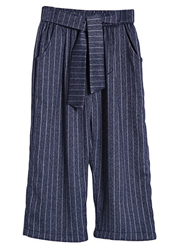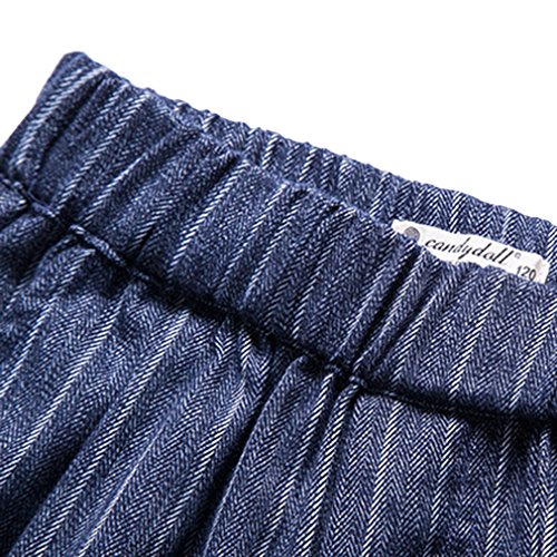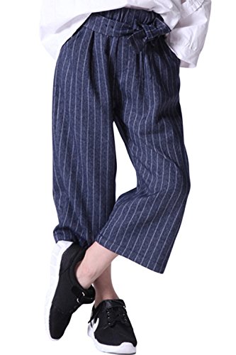(コ-ランド) Co-land カッコイイ ロングパンツ 九分丈パンツ キッズ 女の子 ガールズ 女児 子供服 ワイドパンツ ジュニアズボン ボトムス 縦縞柄 リボン ネイビー 120