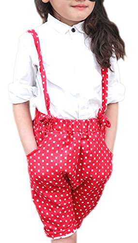 (コ-ランド) Co-land ベビー服 キッズパンツ ハーフ丈 女の子 ドット柄 オーバーオール 子供服 ジュニアズボン 赤ちゃんサロペット ボトムス 女児カバーオール 夏着 レッド サイズ15