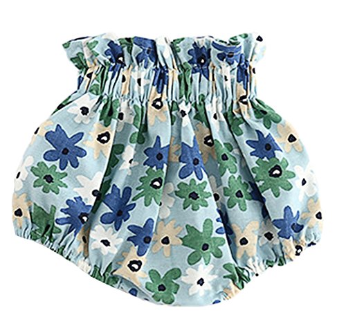 (コ-ランド) Co-land ベビー ショートパンツ 花柄 可愛い ウエストゴム おむつカバー 女の子 赤ちゃん服 バルーンパンツ ブルマ 90 ブルー