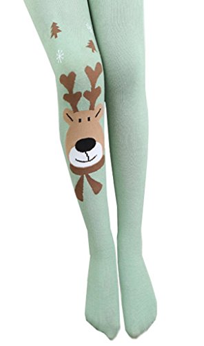 (コ-ランド) Co-land キッズレギンス 女児パンスト スパッツ 女の子タイツ 子供用ストッキング ガールズパンツ ヘラジカ柄 春秋 スキニー ジュニア グリーン L