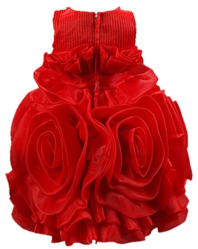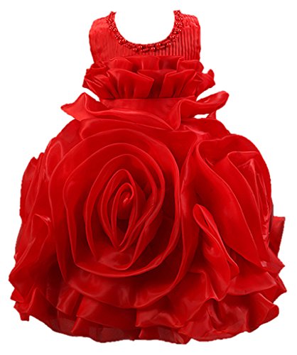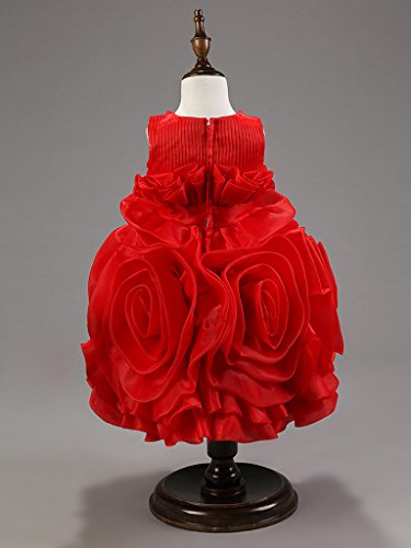 (コ-ランド) Co-landフォーマル キッズドレス プリンセス風 結婚式 ベビーワンピース 女児 女の子 ノースリーブ フラワーワンピ ビーズ飾り 子供ドレス ガールズ 入園式 発表会 (130cm, レッド)