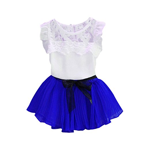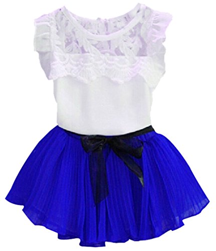 (コ-ランド) Co-land 子供服 キッズトップス プリーツスカート 上下2点セット 半袖シャツ 白 女の子 ワンピース ガールズドレス フリル ベビー 夏着 サファイア色 130cm