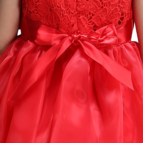 (コ-ランド) Co-land フォーマル キッズドレス ノースリーブ 結婚式 子供ワンピース 女の子 女児 レース リボン ガールズ ベビー 発表会 入園式 花嫁介添人 レッド 130