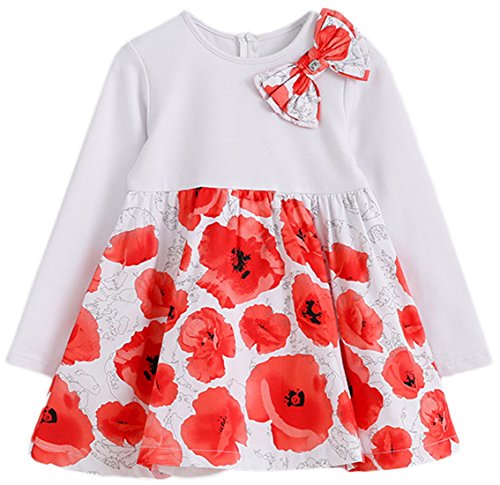(コ-ランド) Co-land 発表会 フォーマル キッズドレス 長袖 結婚式 子供ワンピース 女の子 女児 花柄 蝶結び ガールズ ベビー 演奏会 白 130