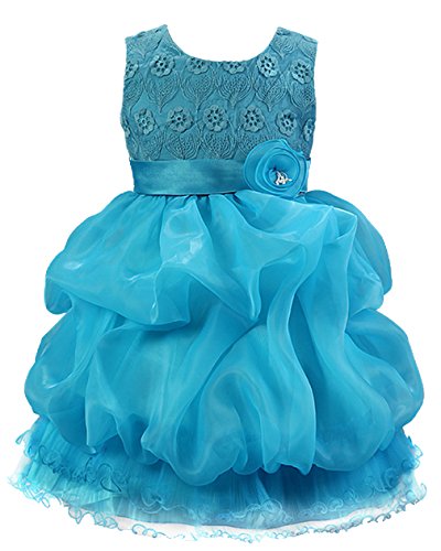 (コ-ランド) Co-land 女の子 キッズドレス 長袖 ワンピース ノースリーブ 子供 チュール リボン 花飾り ガールズ フォーマル フラワーガール 演奏会 結婚式 ブルー 120