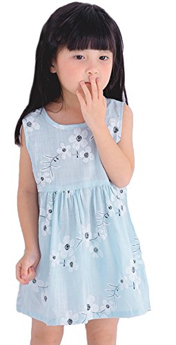 (コ-ランド) Co-land 女の子用 花柄 ワンピース ノースリーブ Aライン ドレス 可愛い ガールズ チュニック 入園式 七五三 お出かけ 110 ブルー