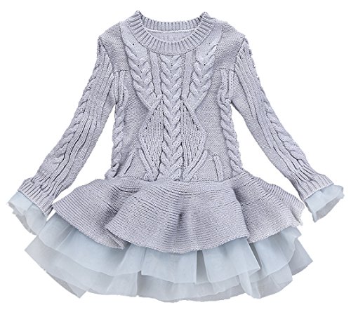 (コ-ランド) Co-land 女の子 セーター ワンピース チュールスカート クルーネック ケーブル編み ニット チュニック 通園 通学 110 グレー