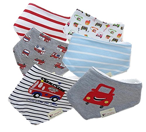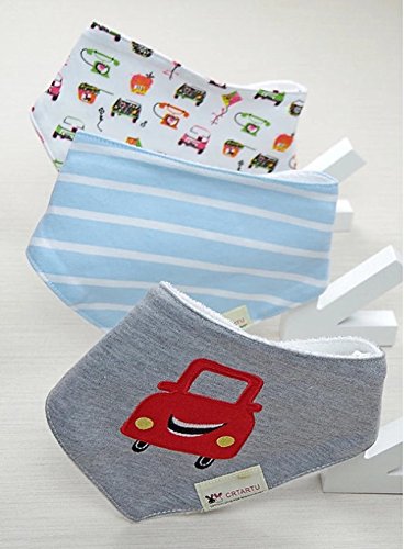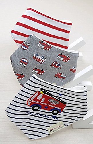 (スマイル)smile かわいい ベビー 男の子用 コットン 三角バンダナ スタイ 食事エプロン 車 くるま柄 6枚セット