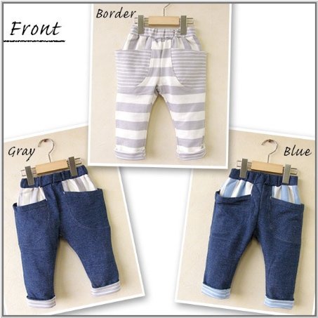変化スパンフライス素材で動きやすさ抜群の綿パンツ!ボーダー柄などを組み入れてかわいいデザインに仕上がっています!ミニ裏毛で温かさバツグンのアイテムです!