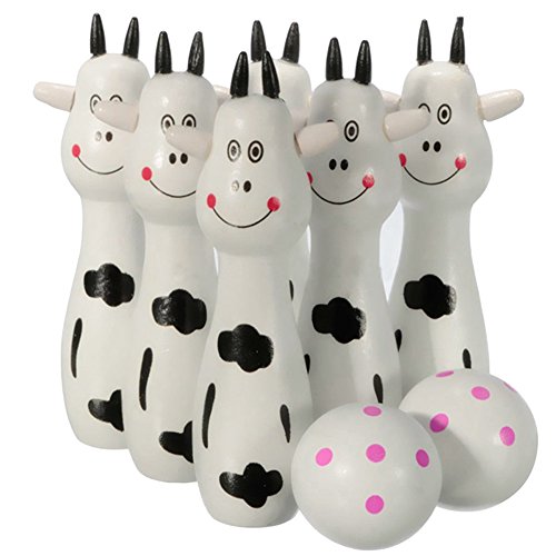 (トイホーム)Toy home 子供の玩具 ボウリングボール セット 6ピン2 ボール 木製 可愛い動物造型 親子遊び用 (白)