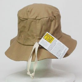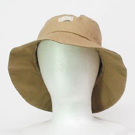 全体に少し下向きにつばがついており、つば部分は生地が二重で、ほかは一重で裏地なしです。