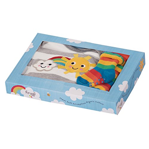 イギリスコーンウォール発のオーガニックウェアFrugiのオーガニックコットンのカバーオール・スタイ・ソックスのギフトセットです。