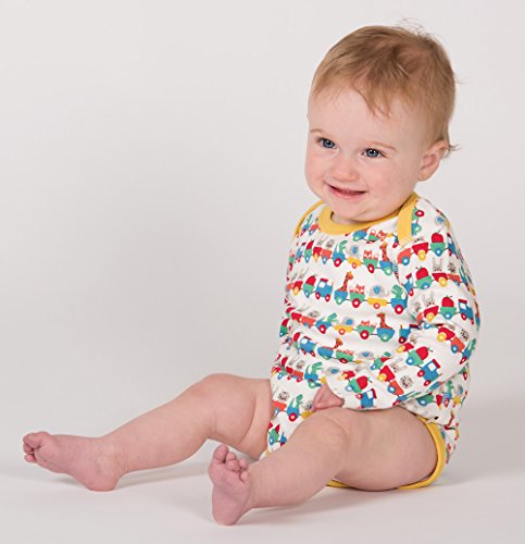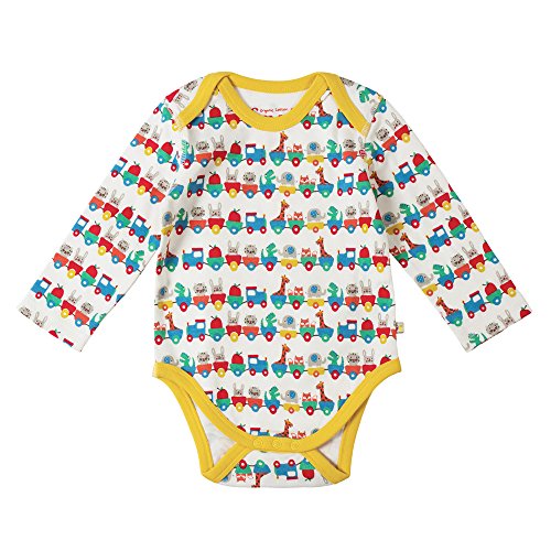 (フルギ) Frugi 長袖ボディスーツ サイズ3-6m ( 60 - 70 ) アニマルトレインプリント オーガニックコットン