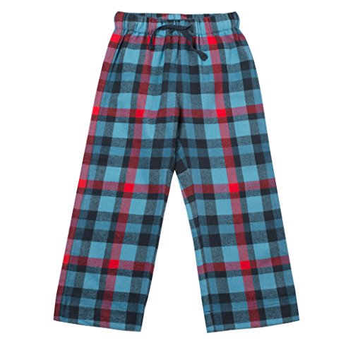 トップスはジャージー地ですが、ボトムスはやわらかいフランネルでブルー・レッド・ネイビーのチェック柄です。 パンツの裾はストレートです。パンツのウェストはゴムとひもです。