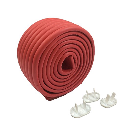 (メイドインコスモス)MADE IN COSMOS コンセントカバー 3個付 ケガ防止 2M コーナーガード クッション 自由自在 角要らず 自由に作れます 3M 両面テープ 付き (レッド)